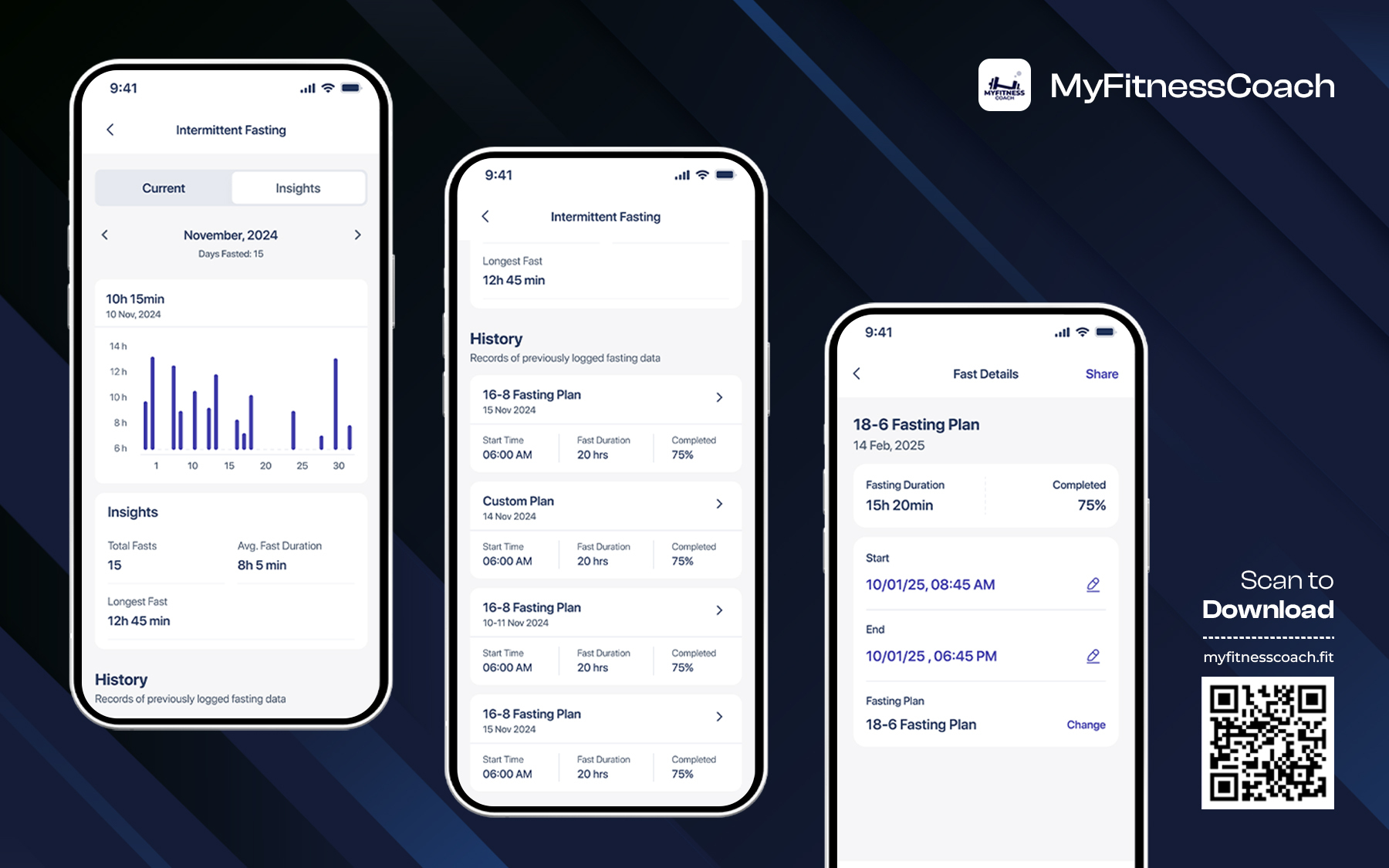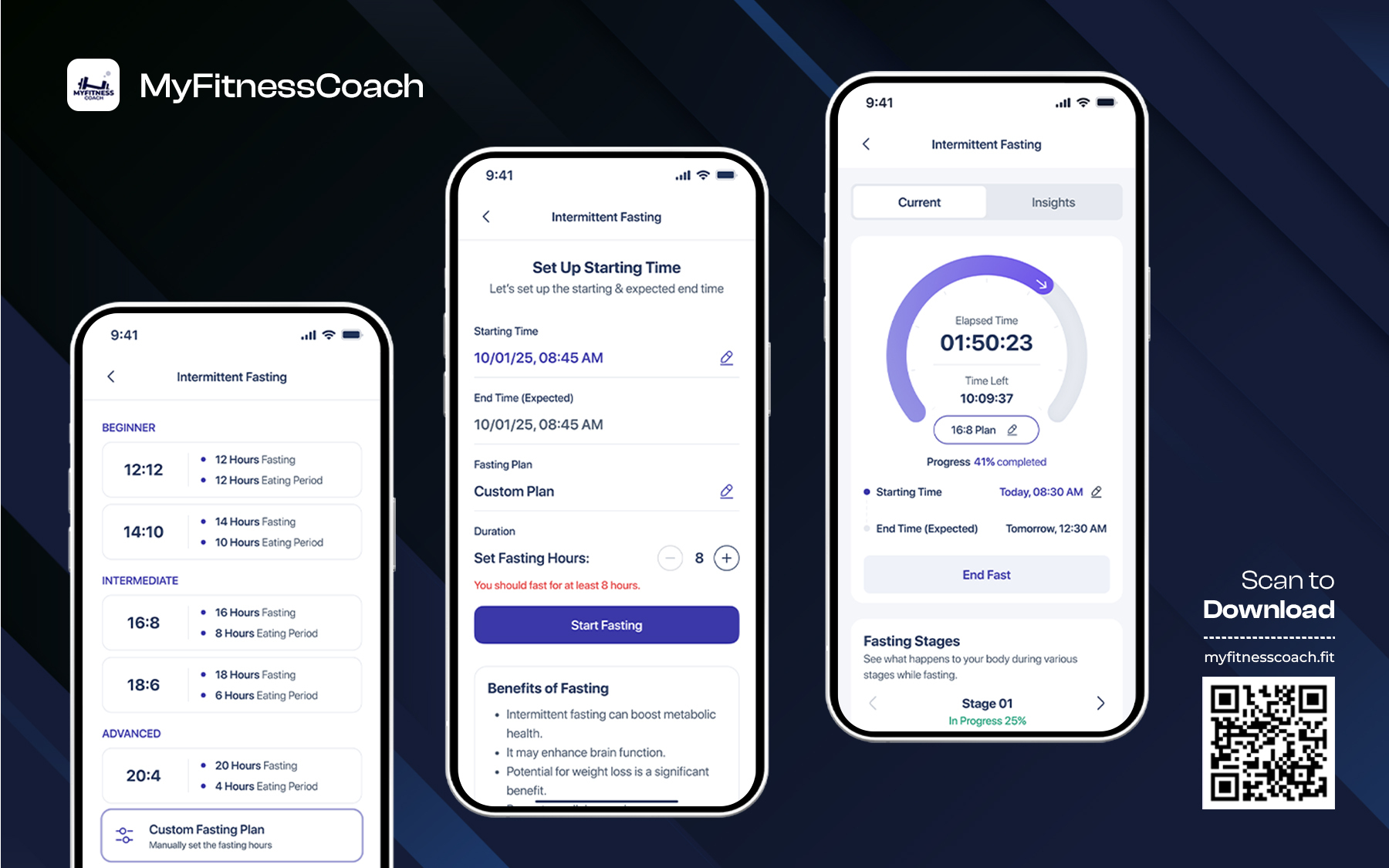 CA, UNITED STATES, February 17, 2026 /EINPresswire.com/ -- MyFitnessCoach has introduced a comprehensive intermittent fasting feature designed to support users at every experience level, from those exploring fasting for the first time to experienced practitioners following advanced protocols. The new feature combines structured fasting plans, real-time progress tracking, fasting stage education, and detailed historical insights within a single integrated platform.Intermittent fasting has gained significant attention in the health and wellness community as a sustainable approach to managing calorie intake, supporting metabolic health, and building consistent eating habits. Unlike rigid diet plans that restrict specific foods, intermittent fasting focuses on timing, offering users flexibility in food choices while creating a structured eating window. MyFitnessCoach recognizes this flexibility as central to long-term adherence and has designed its fasting feature accordingly.